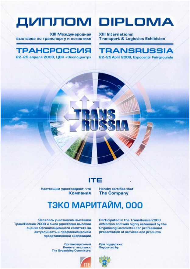 Диплом участника выставки ТРАНСРОССИЯ 2008